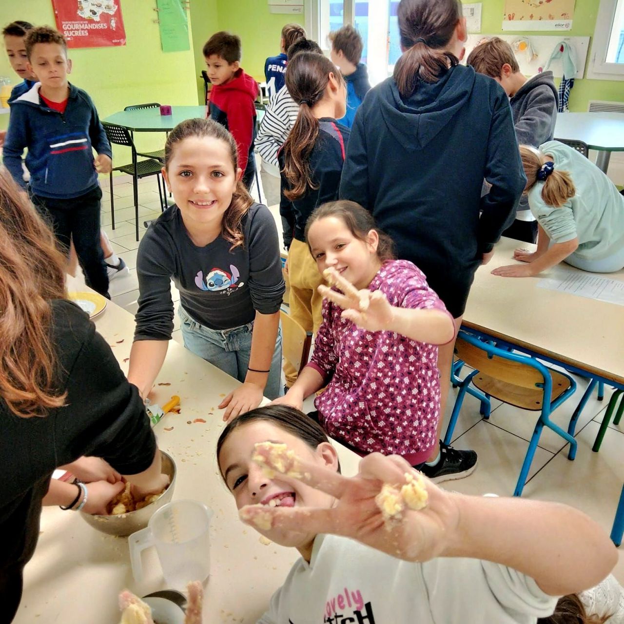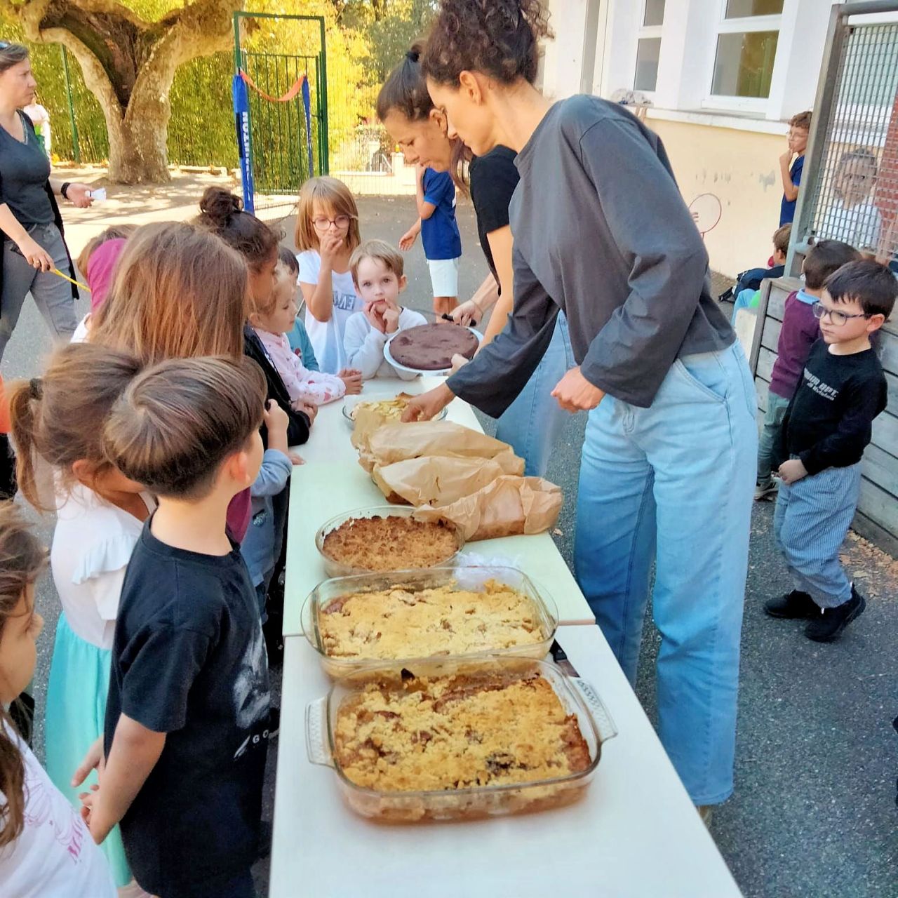 La classe de maternelle nous a préparé un crumble aux pommes. Celle des CP-CE nous a concocté des gâteaux aux pommes et les CE2-CM ont fait de la compote de pommes.